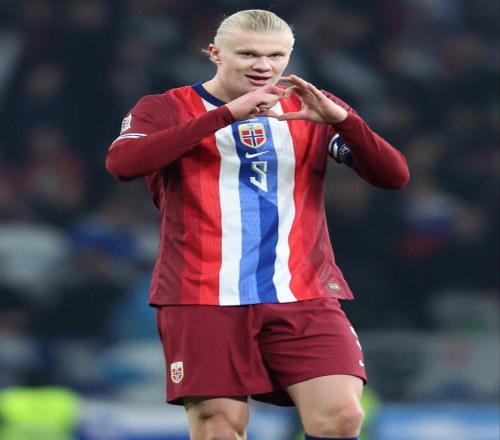 只用了46场,哈兰德打进代表挪威成年队的第50个进球