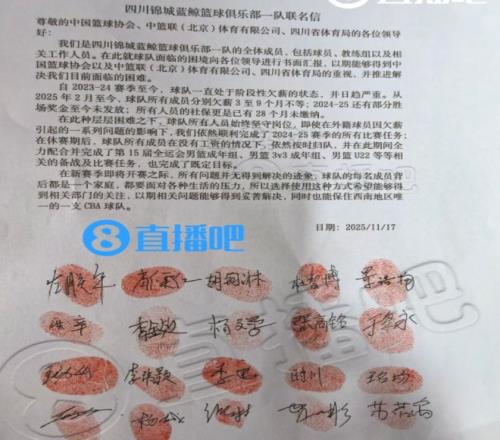之所以出现这样的困境,是因为他们一直都存在欠薪的情况,甚至从23-24赛季就开始了。而从2025年起,球队的所有球员分别欠薪3至9个月不等,球队的奖金没有发,甚至出现28个月的社保没有缴纳。这主要的核心问题肯定还是因为四川没钱了,不然他们也不会发布这样的联名信。
