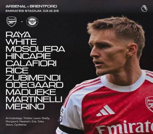 阿森纳vs布伦特福德:马杜埃凯、厄德高、本怀特首发 懂球帝 2025-12-04 10:28:19 北京时间12月4日3:30,英超第14轮,阿森纳主场对阵布伦特福德。赛前首发公布。【上咪咕独家看英超】 英超 咪咕 阿森纳 厄德高 马杜埃凯 本-怀特 伦敦德比 布伦特福德 马丁·奥德加特 上一篇: 英超100球最快球员榜:哈兰德111场居首,希勒第二,凯恩第三 下一篇: 13!后防线离谱失误,切尔西兵败爆冷,助攻升班马逃出降级区