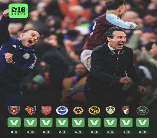 据统计,维拉各项赛事最近9场比赛全部取胜,近11场英超10胜。