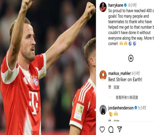 凯恩社媒:很自豪俱乐部400球,但没大家支持我根本做不到